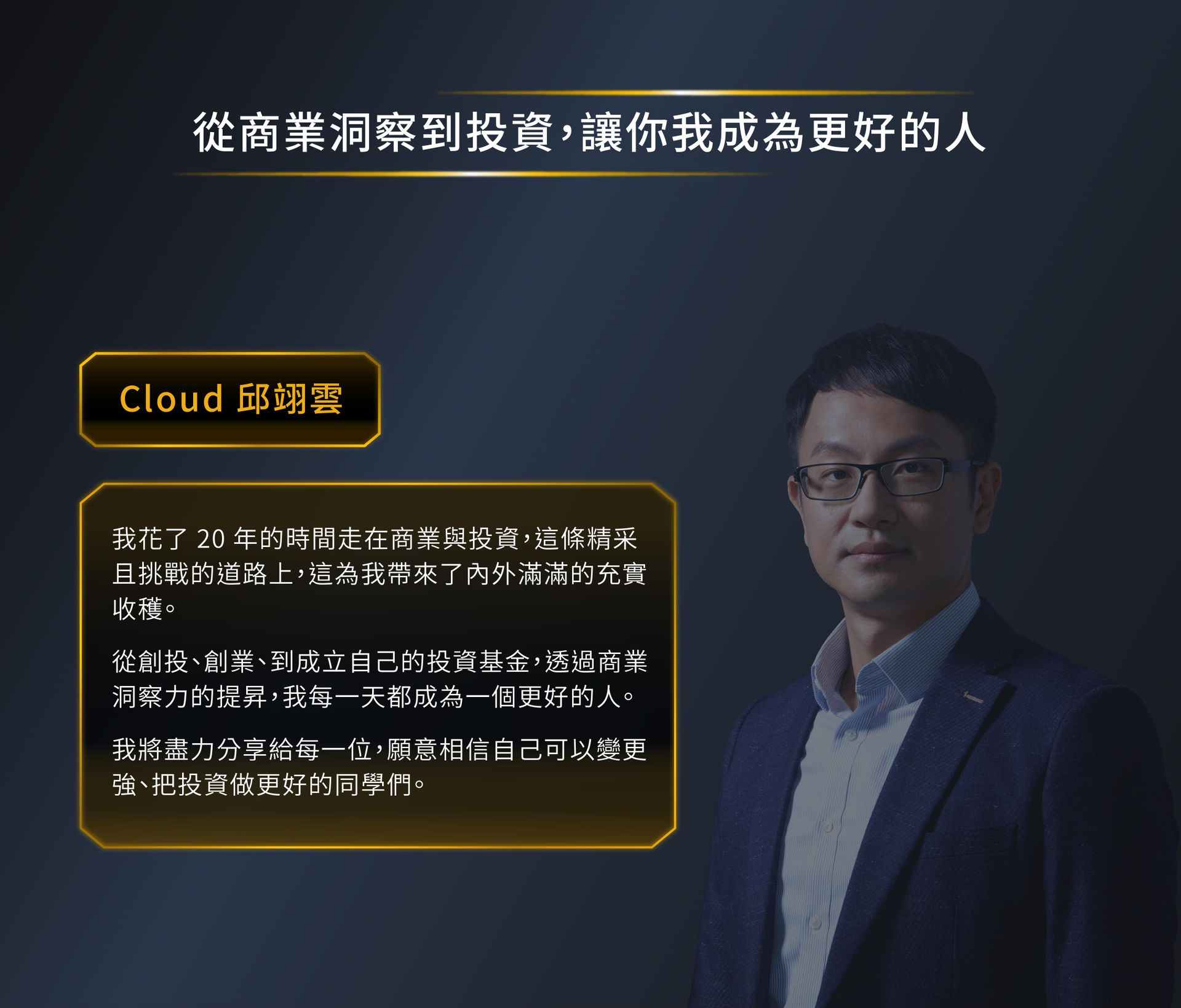 Cloud台大商研所(台灣MBA No.1)畢業後就進入開發創投(台灣金融業頂尖職缺)歷練,學經歷都TOP,人又親和不藏私,如此高規格講師在投資教育市場很少見,想要精進基本面分析技能的投資人不可錯過!❞ —— 尼莫